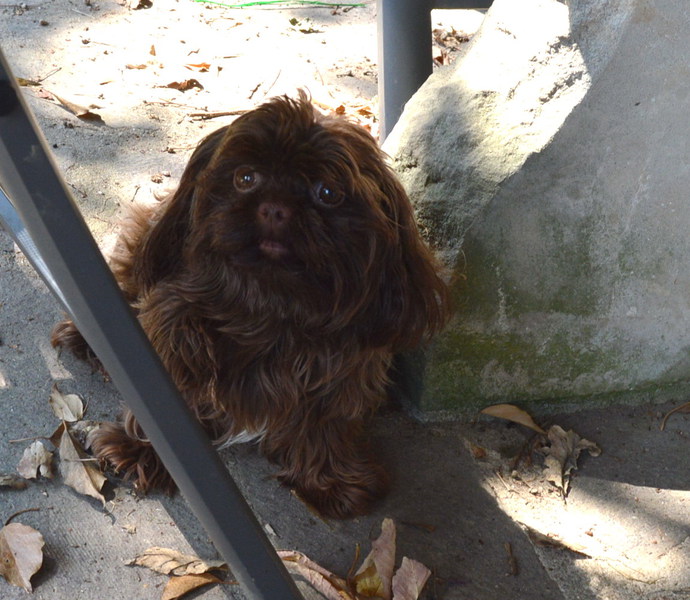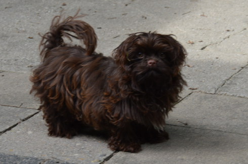 Sie ist eine kleine kompakte Hündin mit einem Blick , dem man nicht wiederstehen kann.