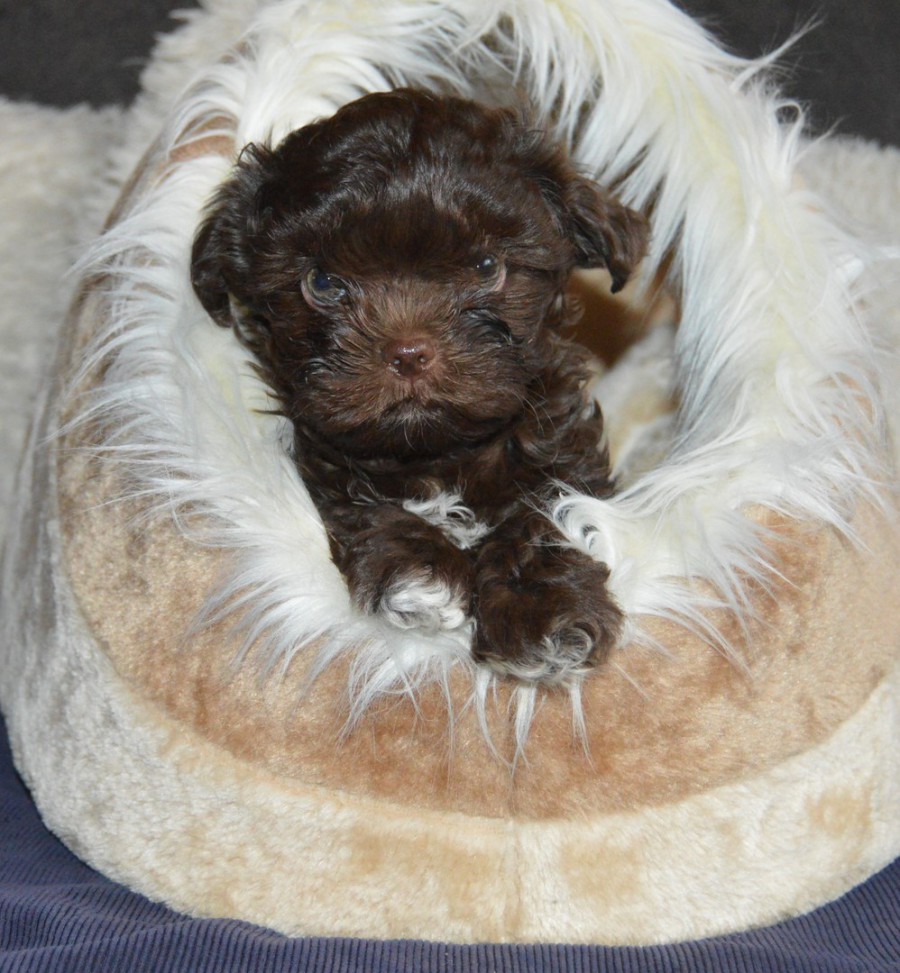 Kleiner brauner Rüde mit weißem Latz und mini weiß an den Pfötchen